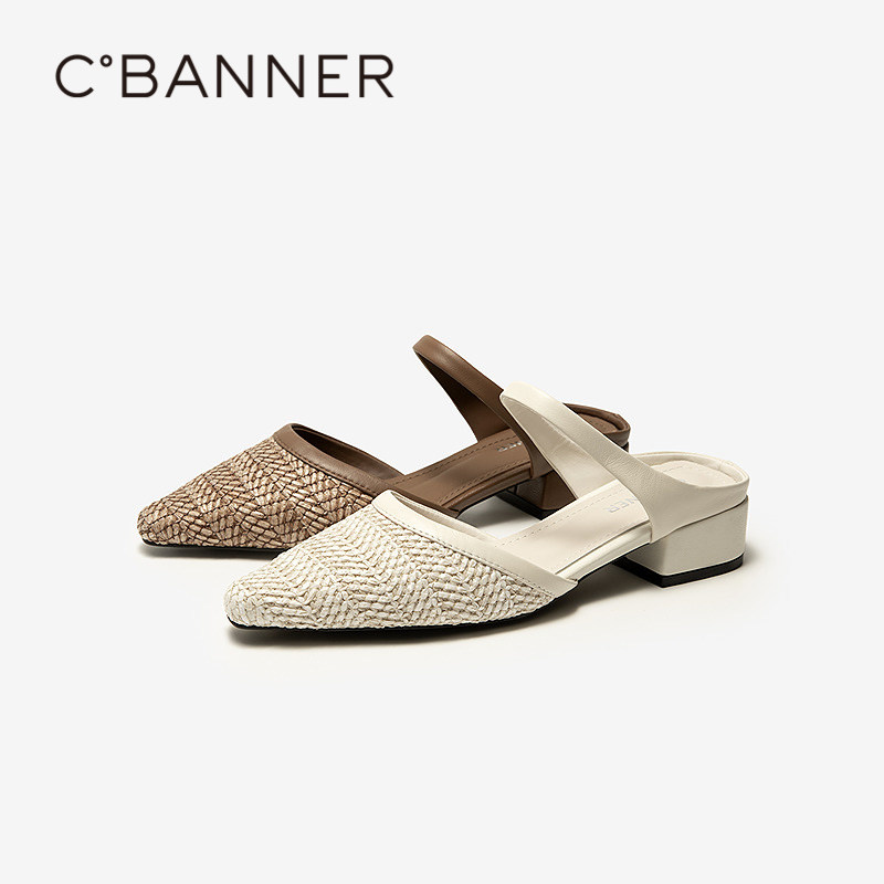 千百度中跟编织包头拖女2026夏季新款外穿通勤舒适不累脚凉拖鞋