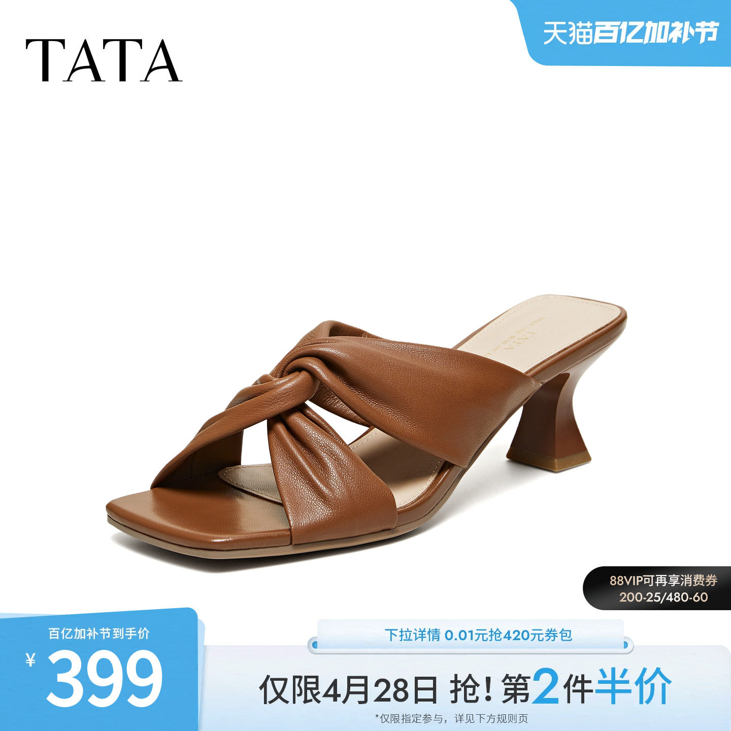 天美意穆勒鞋包头半拖鞋女外穿凉拖罗马凉鞋子新款KT031BT4