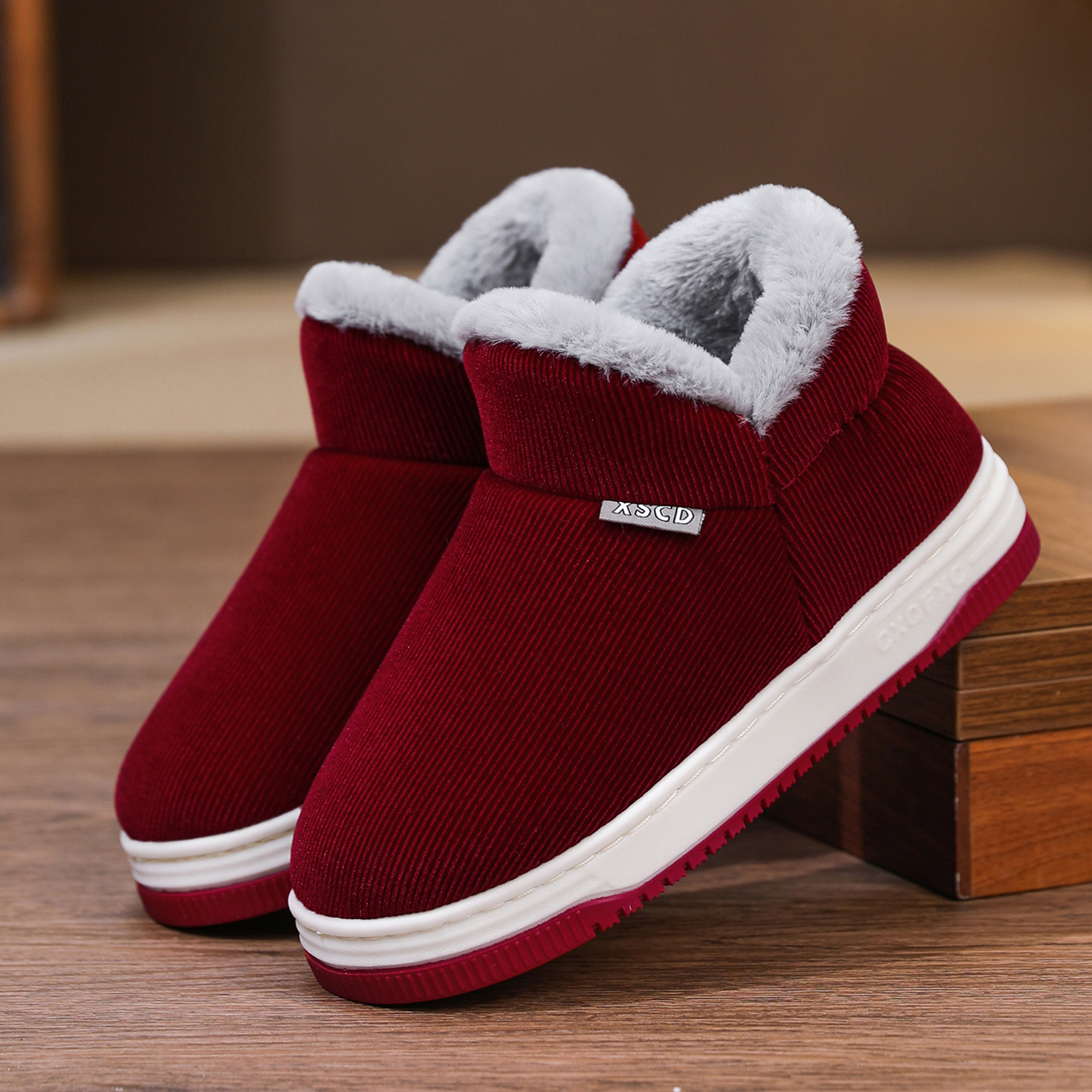 冬季灯芯绒高包跟棉拖鞋男女款防滑厚底加绒加厚保暖外穿老人棉鞋