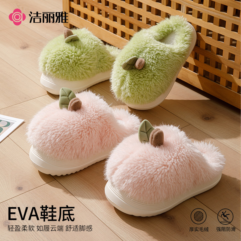 红豆买1送1棉拖鞋女士冬季2025新款情侣室内家居卡通保暖毛毛鞋男