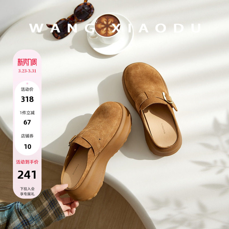 棕色真皮厚底勃肯鞋女款2026新款春季一脚蹬外穿半拖鞋子增高女鞋