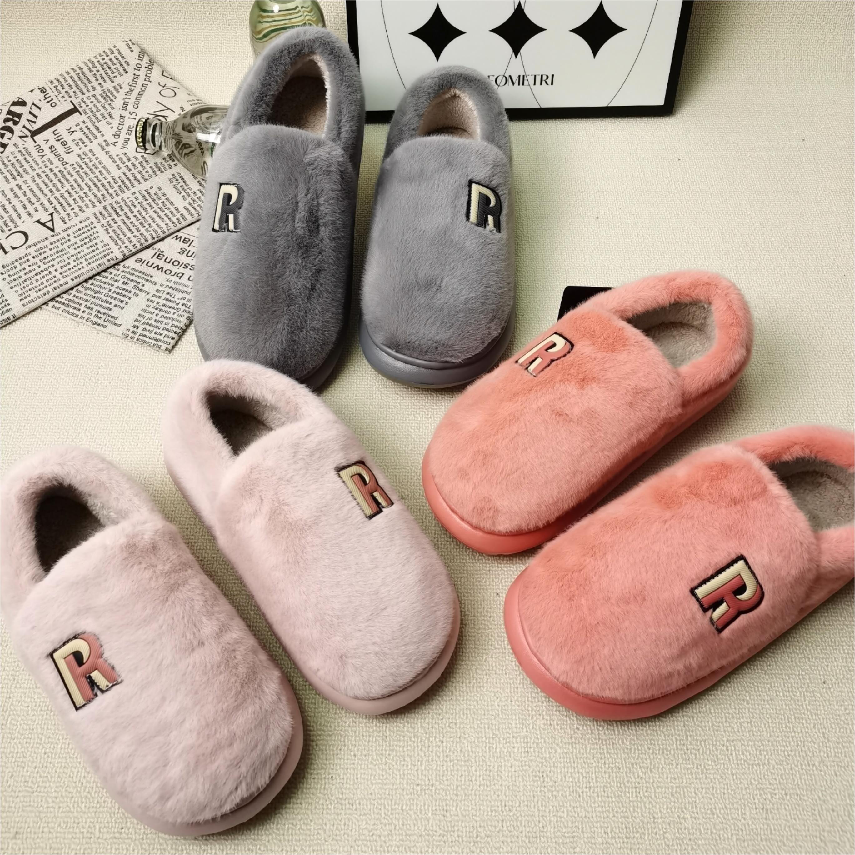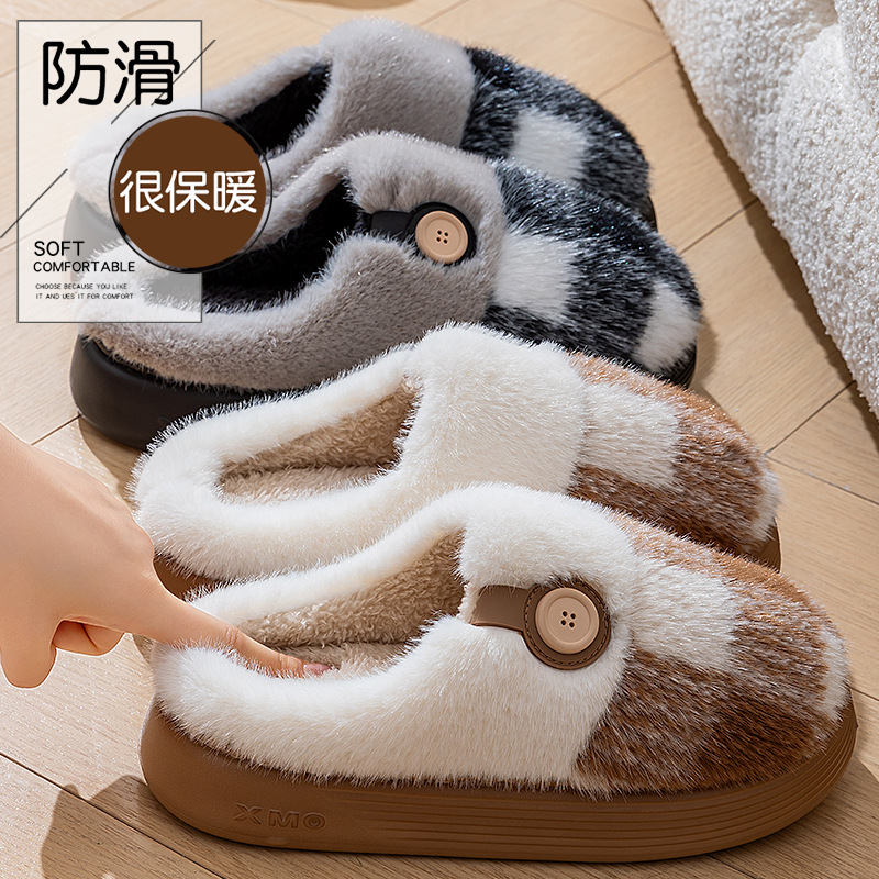 朴西2024新款包跟棉拖鞋冬季女厚底室内家居软底保暖防滑毛绒棉拖