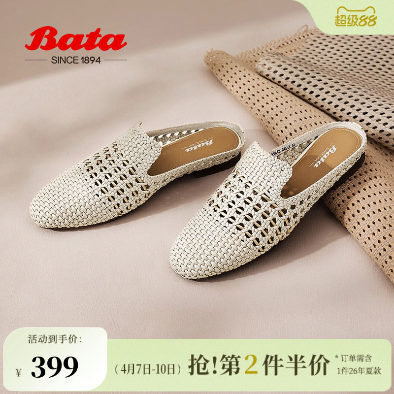TATA他她小藤蔓气质高跟拖鞋女通勤法式一字带休闲凉鞋夏7UJA9BT5