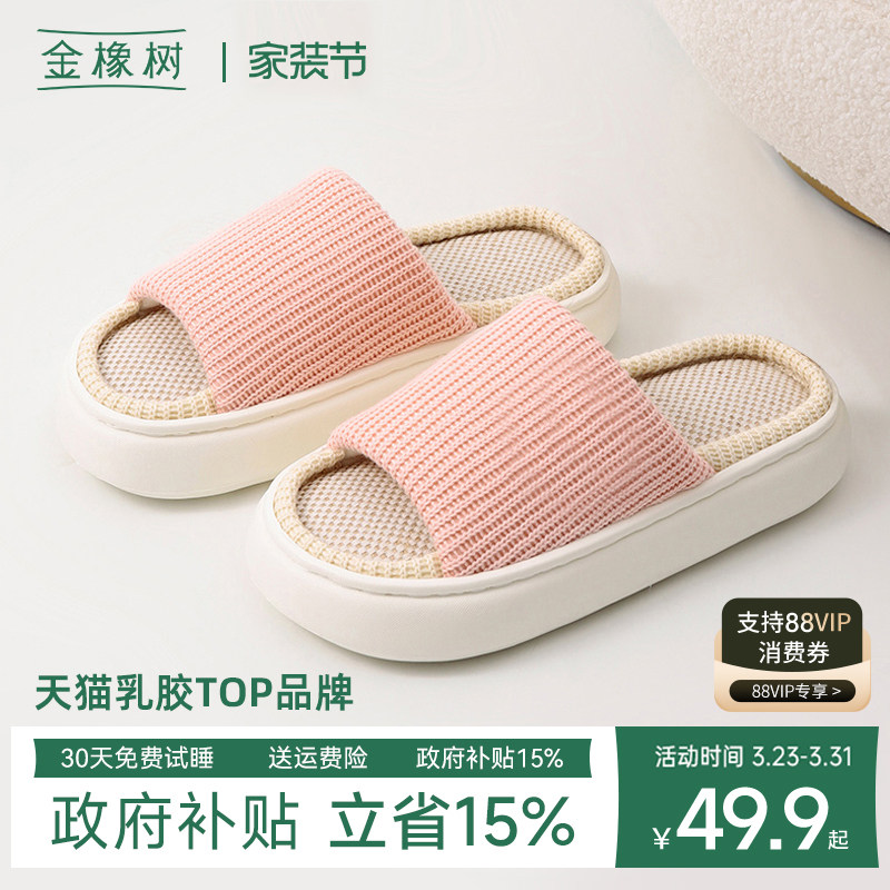 金橡树透气吸汗天然乳胶拖鞋家居室内防滑防臭四季棉拖鞋女款男士