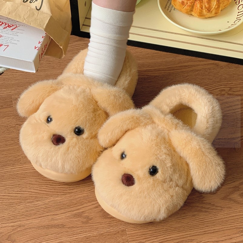 可爱卡通狗棉拖鞋女秋冬季家用厚底保暖毛拖鞋外穿居家毛绒拖鞋潮