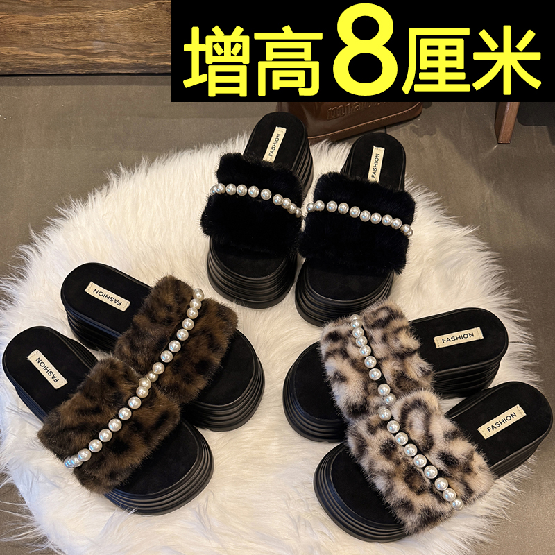 厚底毛毛拖鞋女2025新款秋冬季外穿时尚增高一脚蹬高级感棉拖鞋