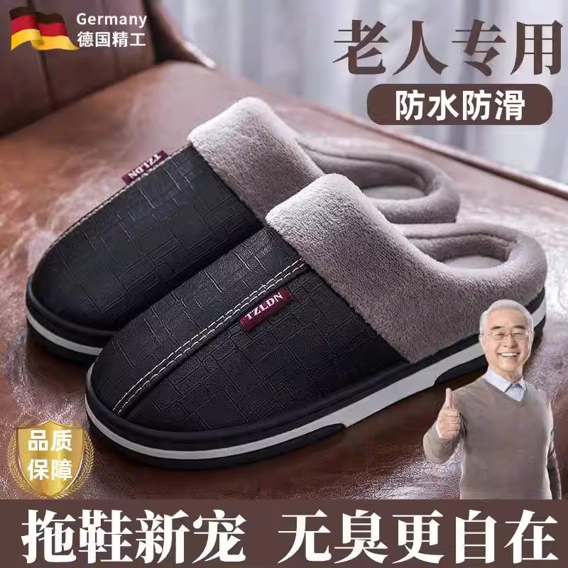 2025冬季加绒毛拖鞋男款棉鞋居家踩屎感防水轻便保暖一脚蹬包头拖