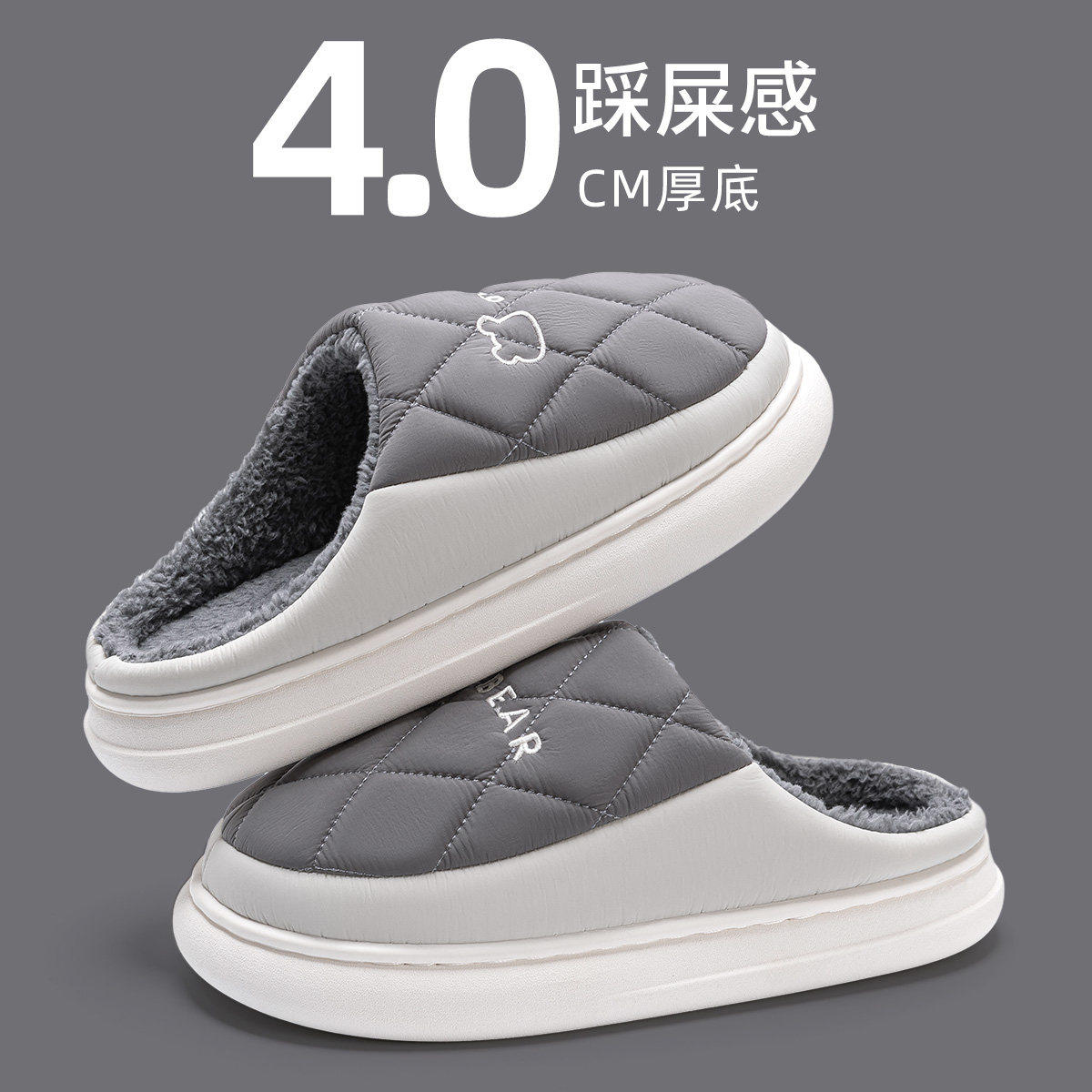 女士踩屎感棉拖鞋冬季2026新款室内家居防滑防水厚底情侣拖鞋男士
