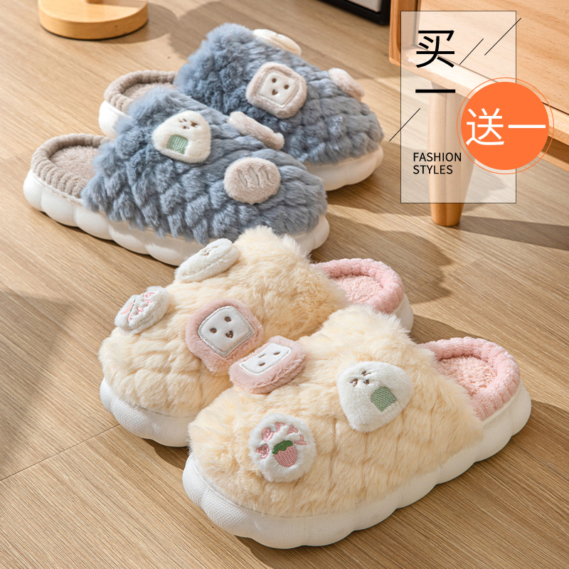 买一送一踩屎感棉拖鞋女款秋冬季新款室内保暖防滑厚底情侣棉拖男