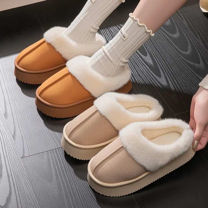 蘑菇棉拖鞋女士冬天2025新款家居室内厚底加绒毛毛鞋保暖防滑静音