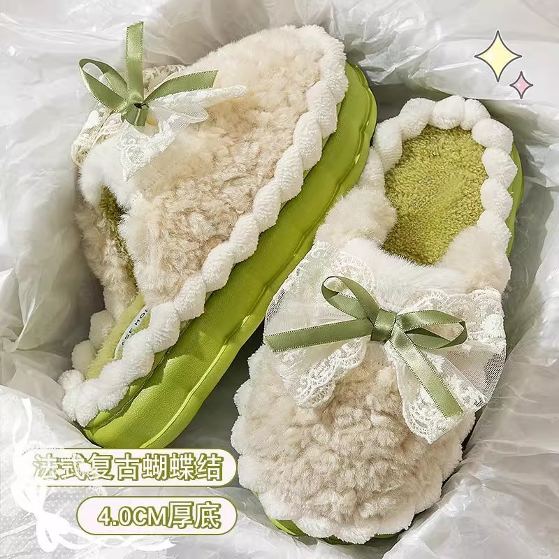 蝴蝶结棉拖鞋女士秋冬季可爱2025新款室内家居厚底毛毛绒保暖防滑