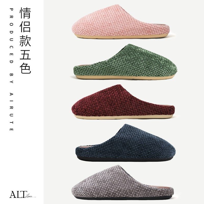 日式木地板静音抗菌防臭棉拖鞋秋冬男女情侣软底居家毛绒保暖防滑