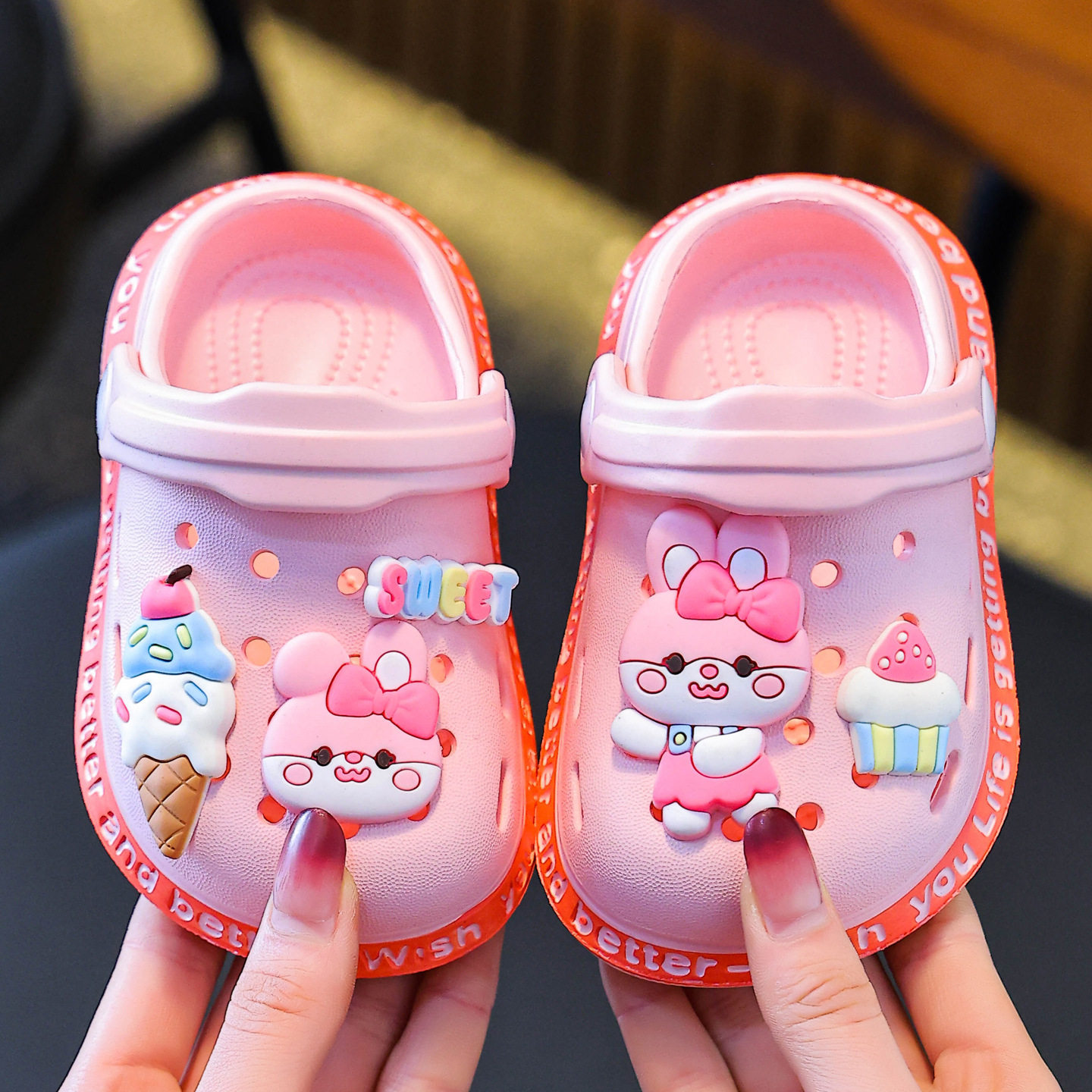 新款儿童拖鞋女童室内家居洞洞拖鞋防滑软底可爱宝宝女孩凉拖鞋