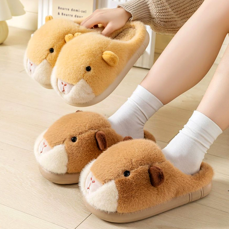 2025冬新款加绒保暖棉拖鞋女孩可爱仓鼠室内防滑加厚毛绒拖鞋MX14