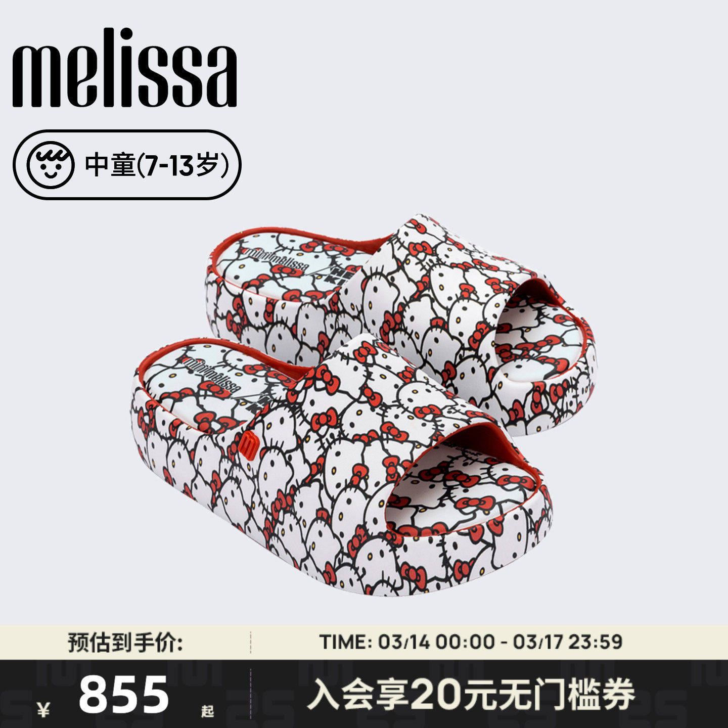 Melissa/梅丽莎26新款中童三丽鸥HELLO KITTY联名厚底拖鞋37875