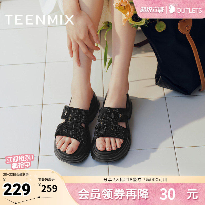 天美意新款商场同款厚底一字拖沙滩拖女运动拖鞋BI972BT5