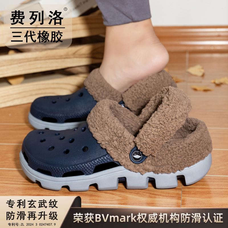 弹性TPR树脂鞋底 回弹舒适出口日本正品加绒冬季保暖家居拖鞋防滑