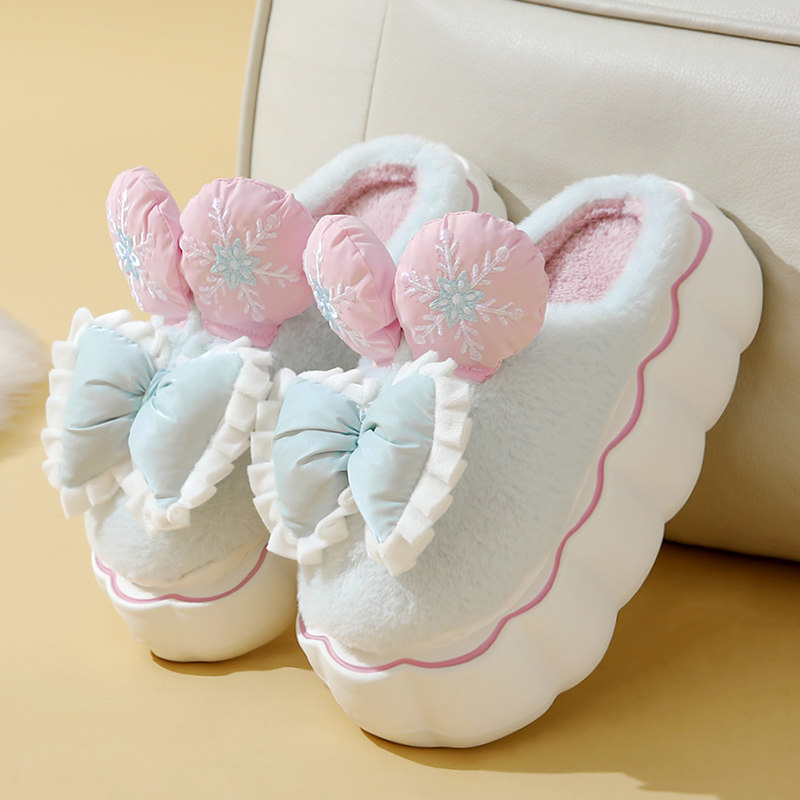 踩屎感棉拖鞋女可爱蝴蝶结厚底家居网红甜甜圈拖鞋冬加绒保暖外穿