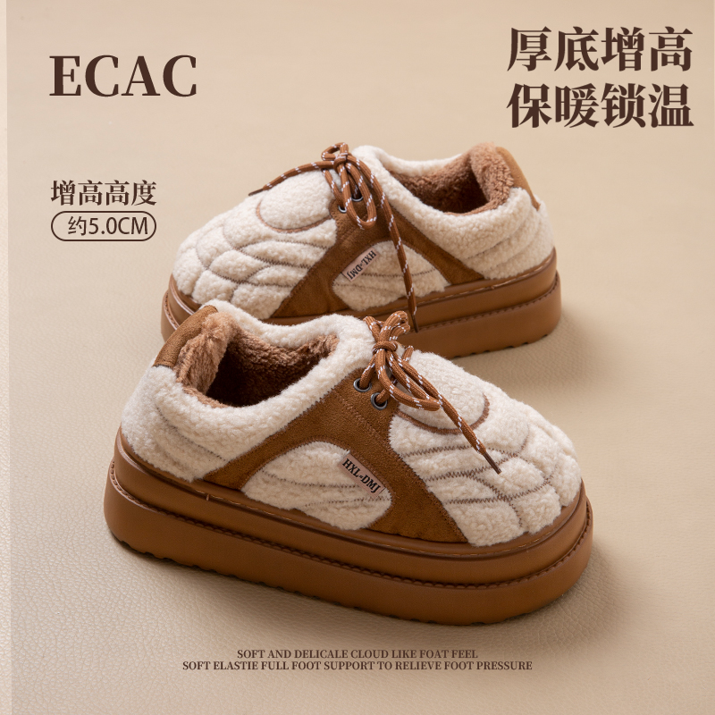 ECAC棉鞋女款2025新款冬季外穿洋气时尚加绒保暖厚底棉拖鞋女包跟