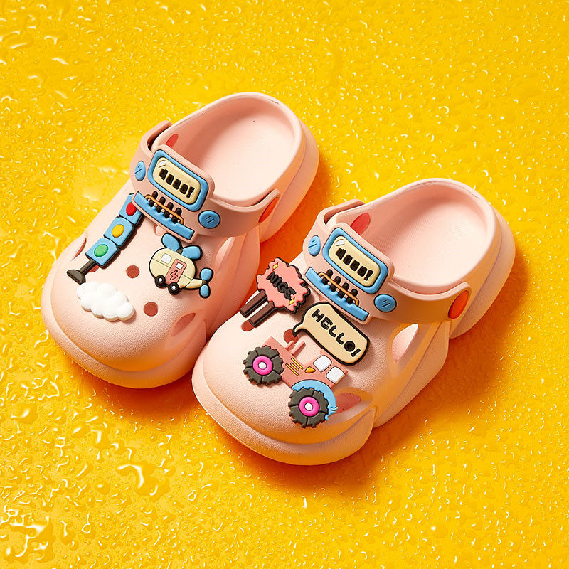 挖掘机儿童洞洞鞋卡通室内外防滑小孩铲车可爱沙滩鞋凉拖鞋