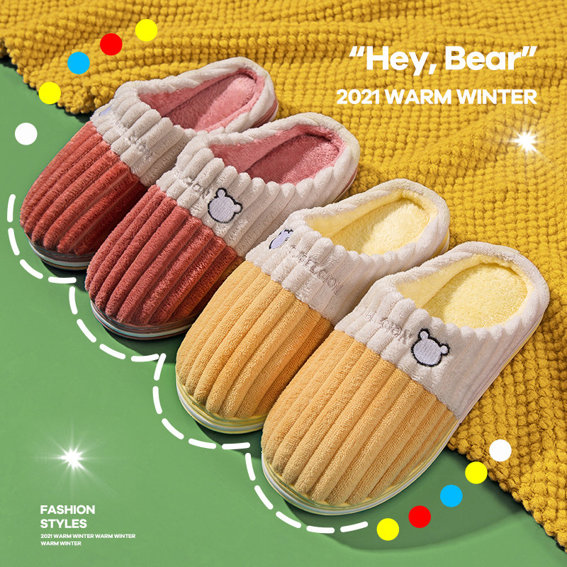 大嘴猴棉拖鞋秋冬居家室内毛毛绒加厚底保暖防滑静音平底棉鞋子女