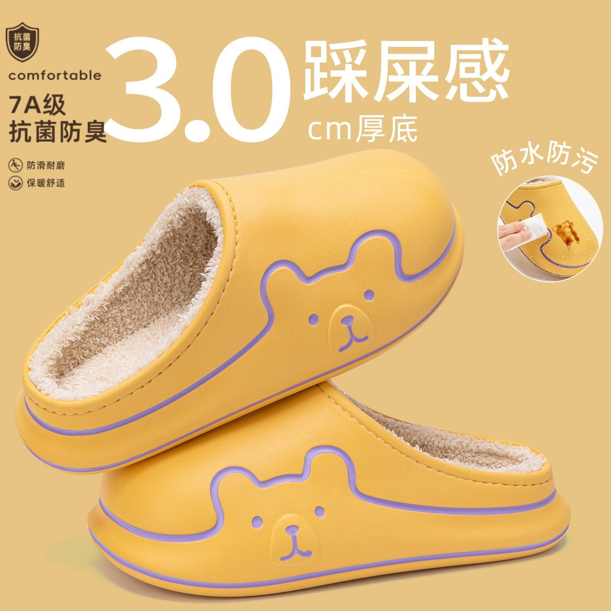 踩屎感保暖棉拖鞋女士室内加绒冬季包跟拖鞋男毛绒情侣居家冬天保