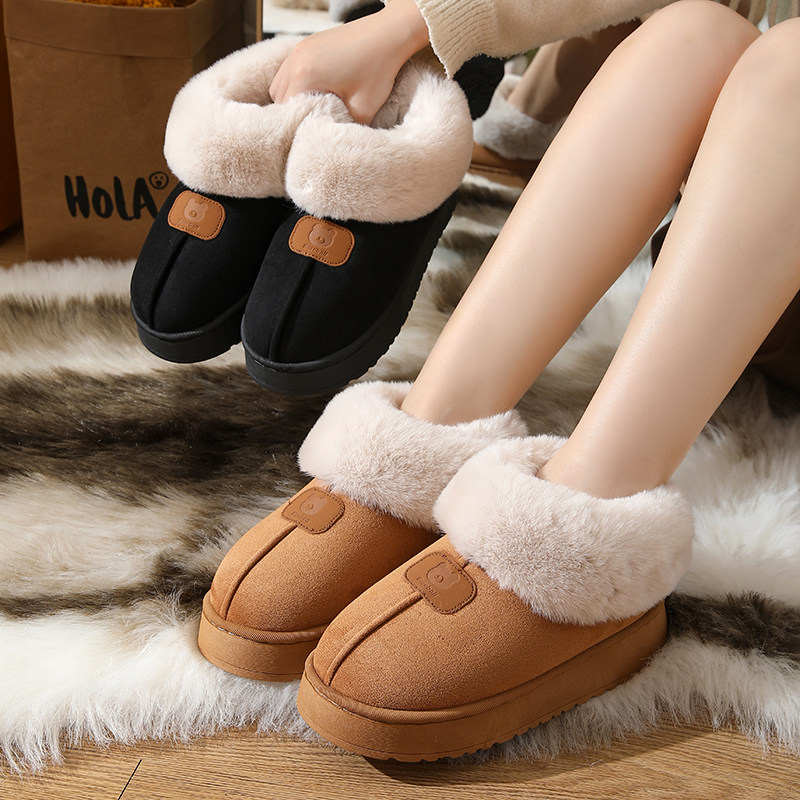 雪地拖加厚加绒情侣麂皮绒居家棉拖鞋冬季厚底防滑毛绒包室内家居