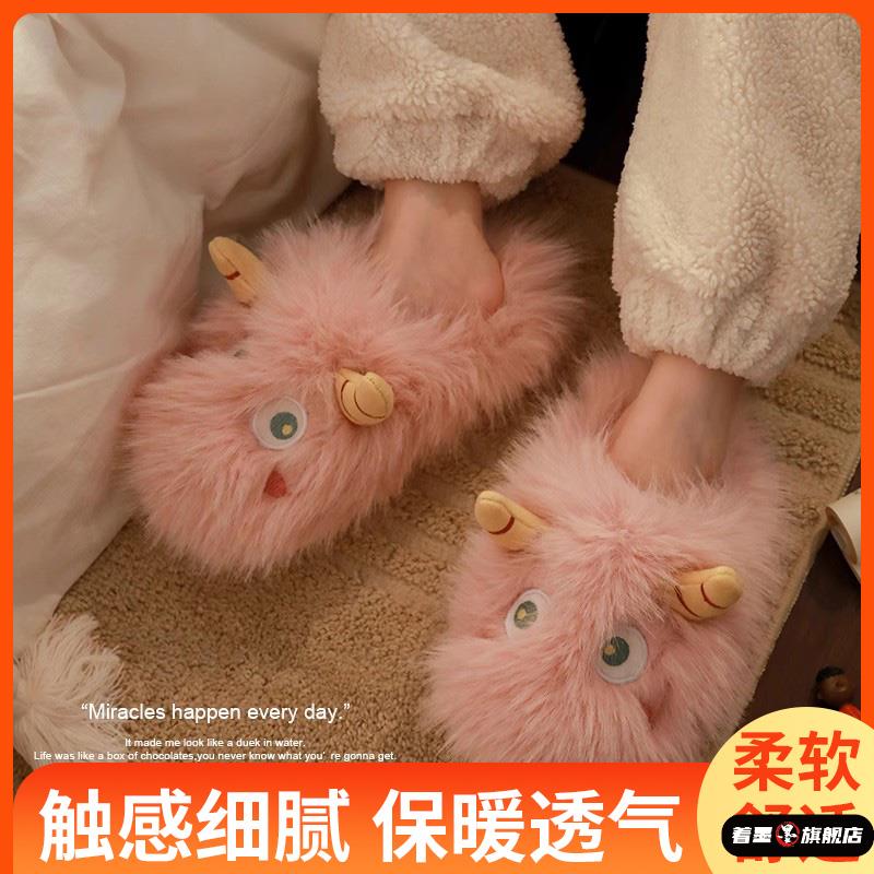 2025年秋冬新款网红小怪兽可爱棉拖鞋女外穿居家室内情侣厚底毛绒