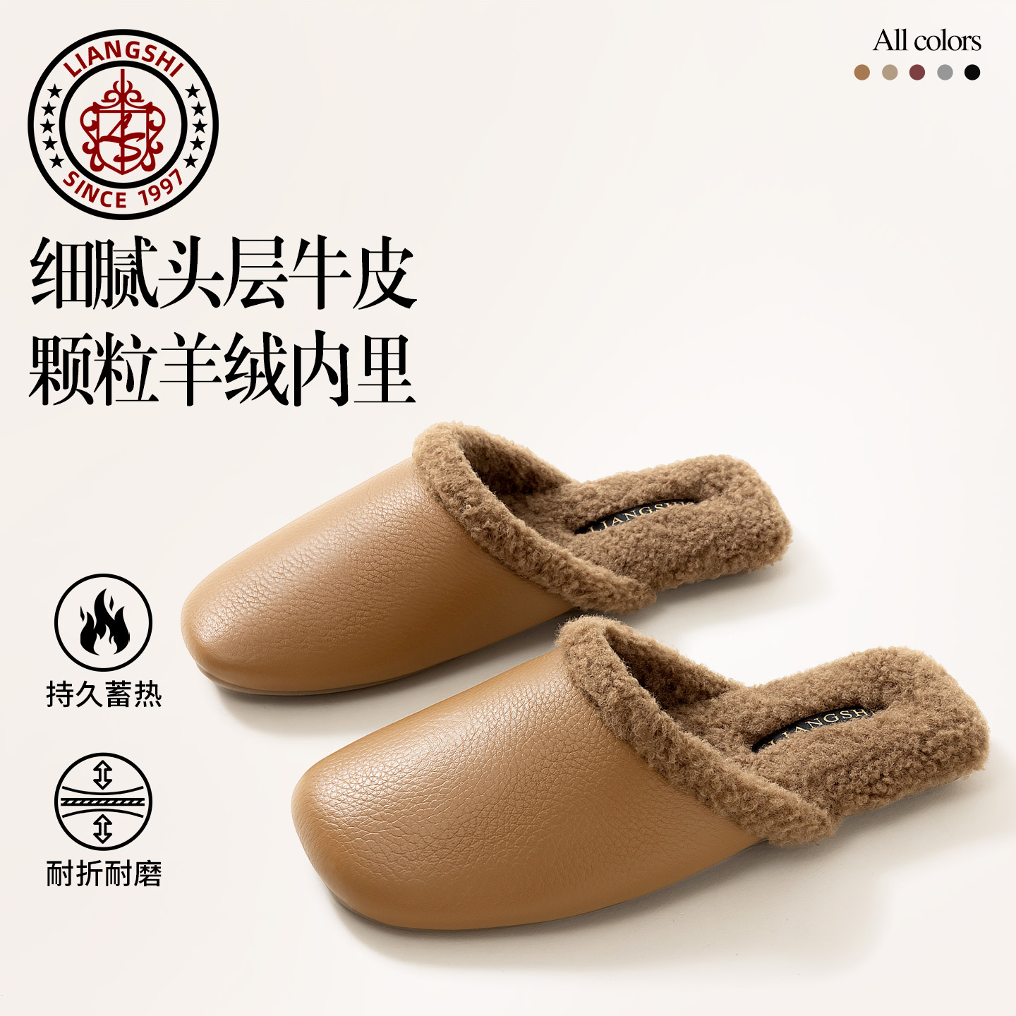 轻奢高端时尚皮毛一体真皮拖鞋情侣秋冬季居家室内防滑地板棉拖鞋
