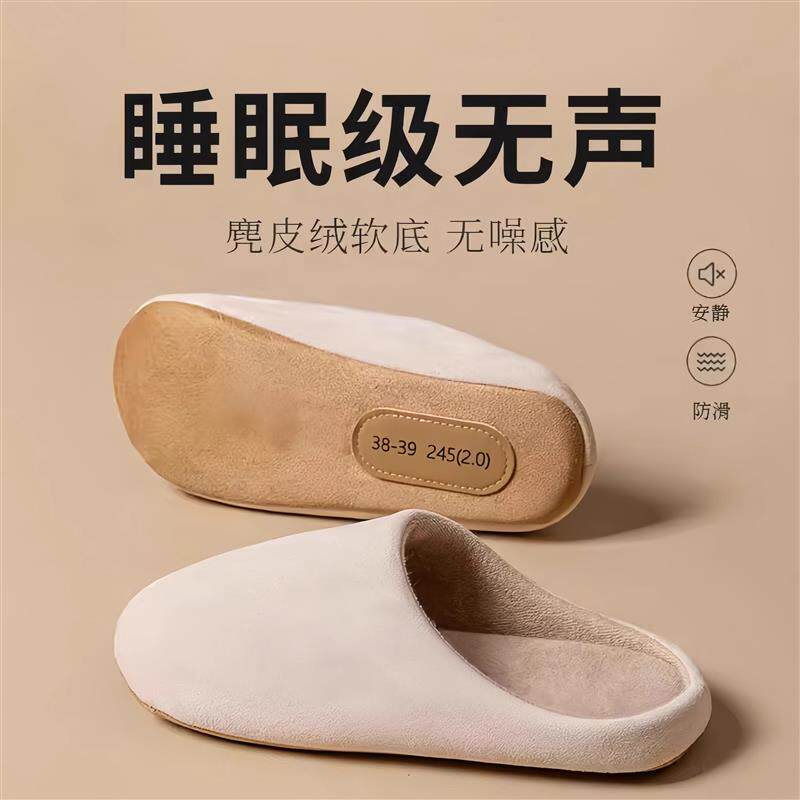 新款情侣绒布拖鞋女士室内家居春秋冬季防滑牛筋底男四季居家