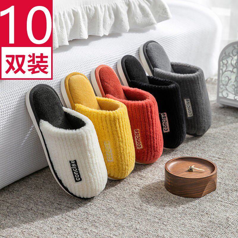 10双棉拖鞋春秋家居家用冬季待客人男女防滑绒毛厚底室内宿舍四季