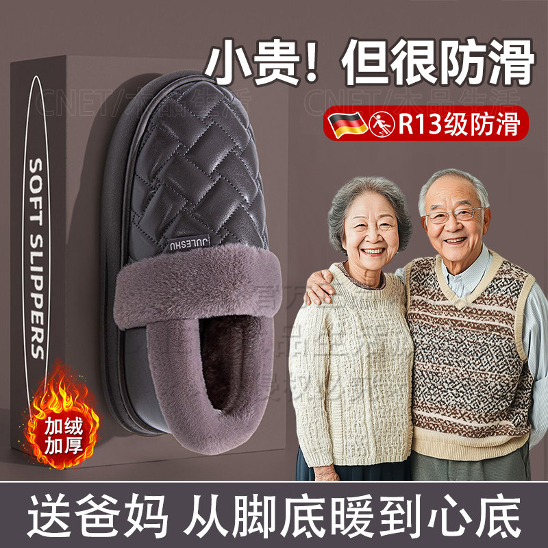 老人棉拖鞋防滑防水女士秋冬季2024新款室内家居保暖包跟棉鞋男款