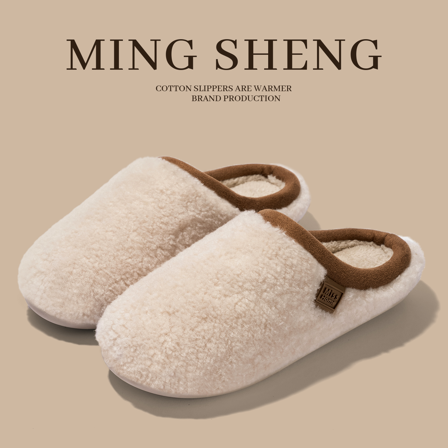 日式无印棉拖鞋男款秋冬2025新款室内家居厚底防滑毛毛绒保暖拖鞋