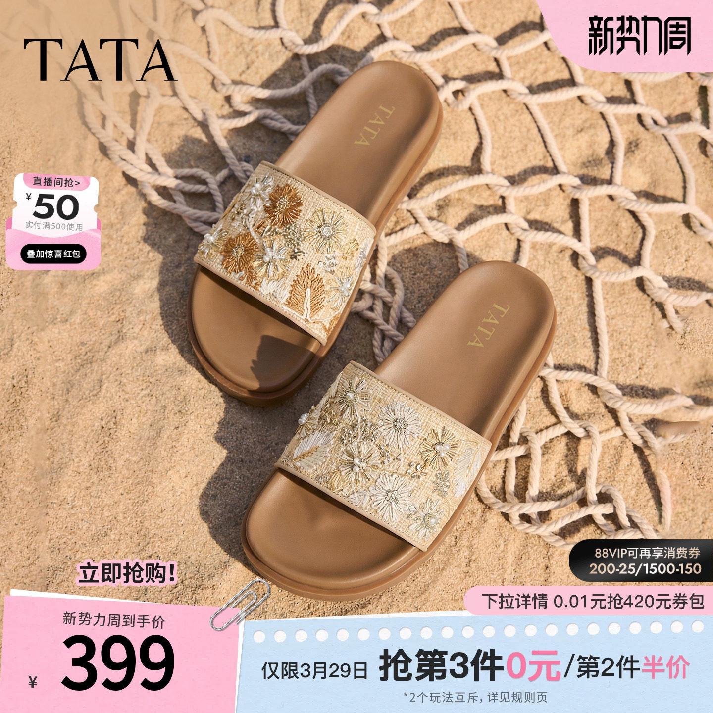 TATA他她女鞋2026夏季新款一字拖外穿百搭时尚休闲拖鞋CMV01BT6
