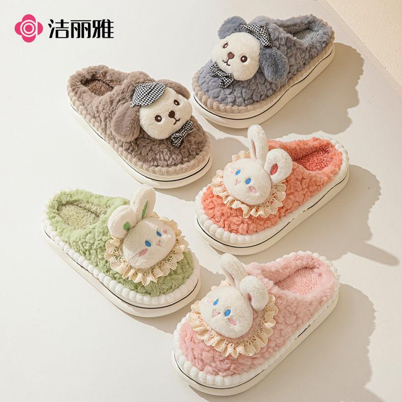 洁丽雅棉拖鞋女2025新款冬季保暖居家室内防滑毛毛3D可爱小兔家用