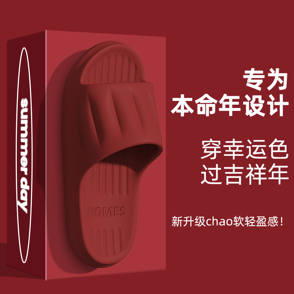 本命年红色eva踩屎感厚底凉拖鞋女室内居家防滑防臭结婚喜庆陪嫁