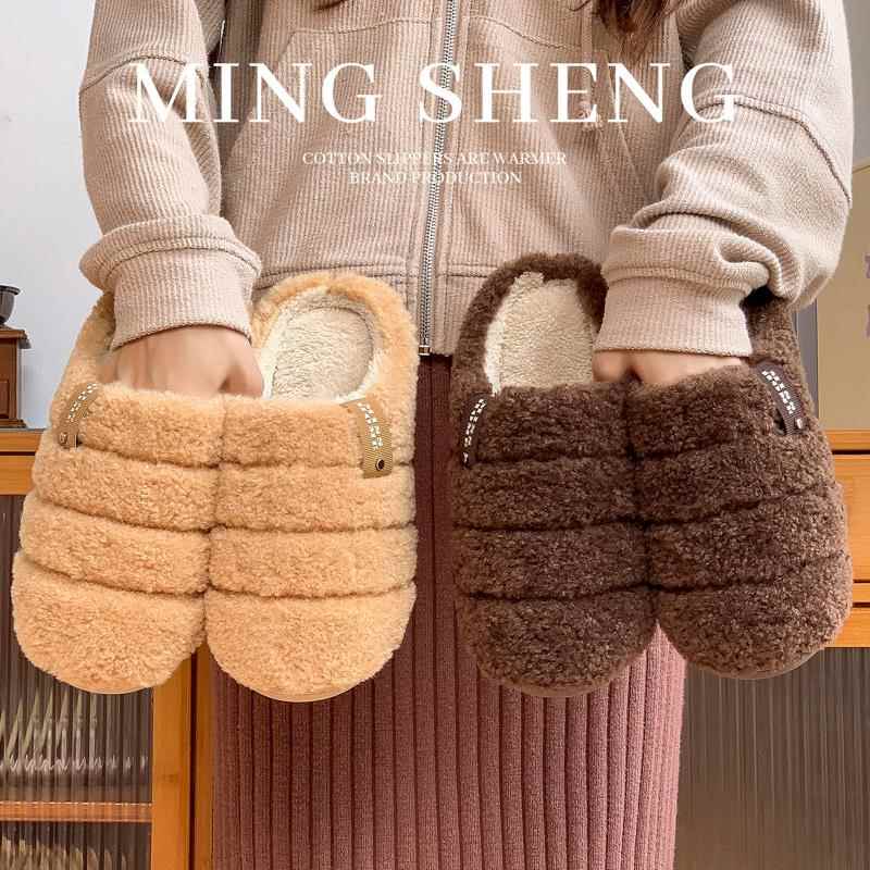 交叉毛毛绒棉拖鞋女秋冬季厚底居家室内保暖2025新款外穿舒适拖鞋