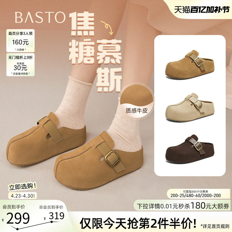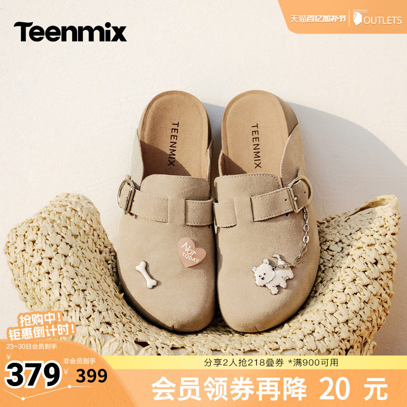天美意萌宠勃肯复古厚底包头半拖鞋女外穿休闲凉拖鞋2026夏季新款