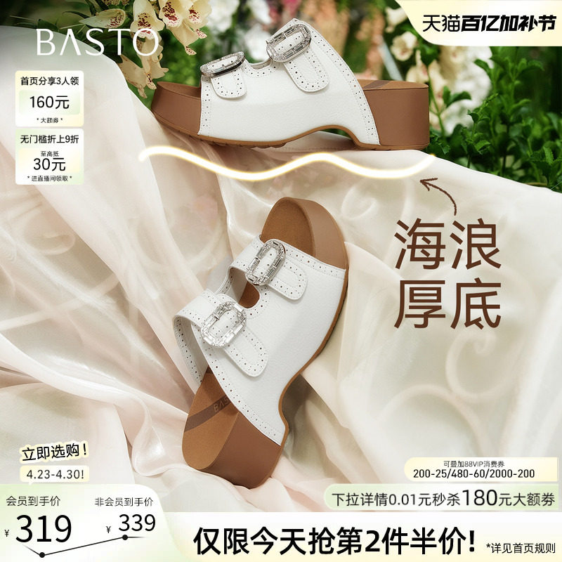 Bata勃肯拖鞋女商场新款英伦风牛皮外穿厚底凉拖鞋25300BT5
