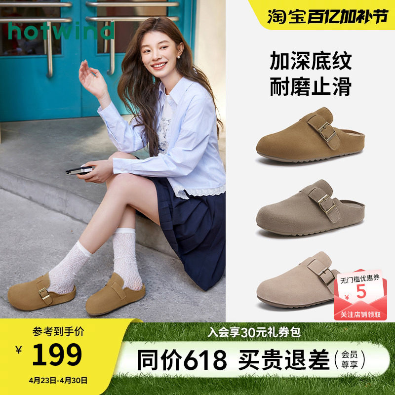 【商场同款】热风勃肯鞋26春新复古休闲外穿拖鞋百搭半拖舒适鞋女