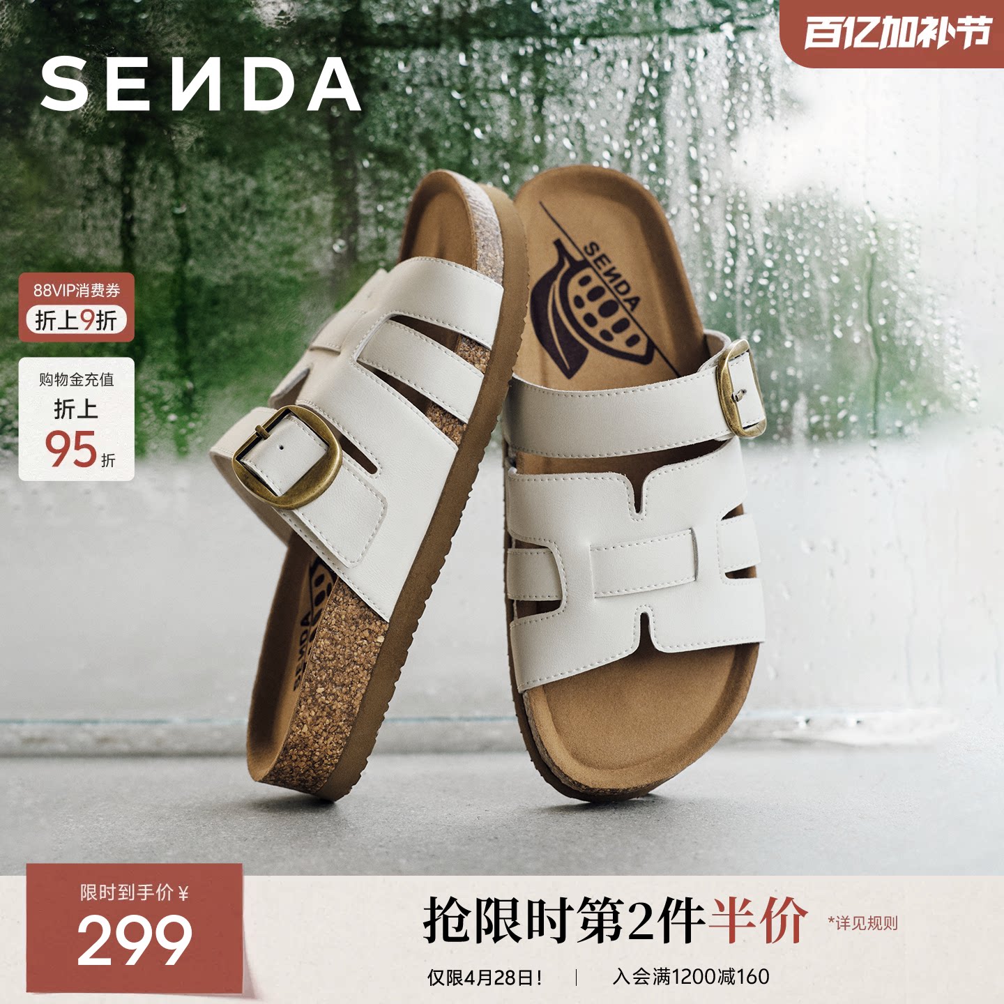 森达勃肯鞋厚底一字拖女鞋26夏新款外穿拖鞋海边度假沙滩凉拖鞋
