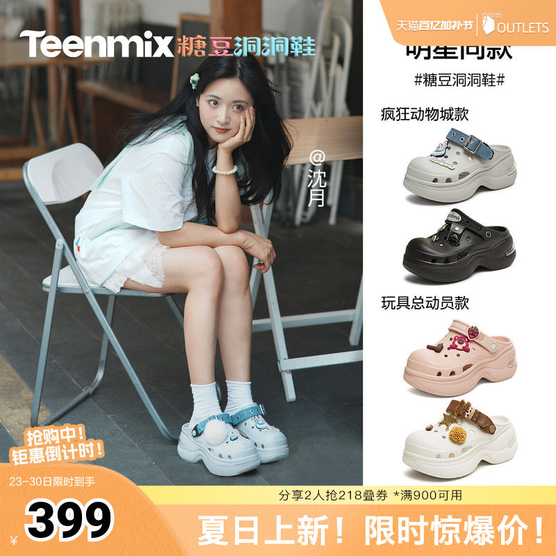 沈月同款天美意疯狂动物城联名糖豆洞洞鞋包头凉鞋女厚底增高拖鞋