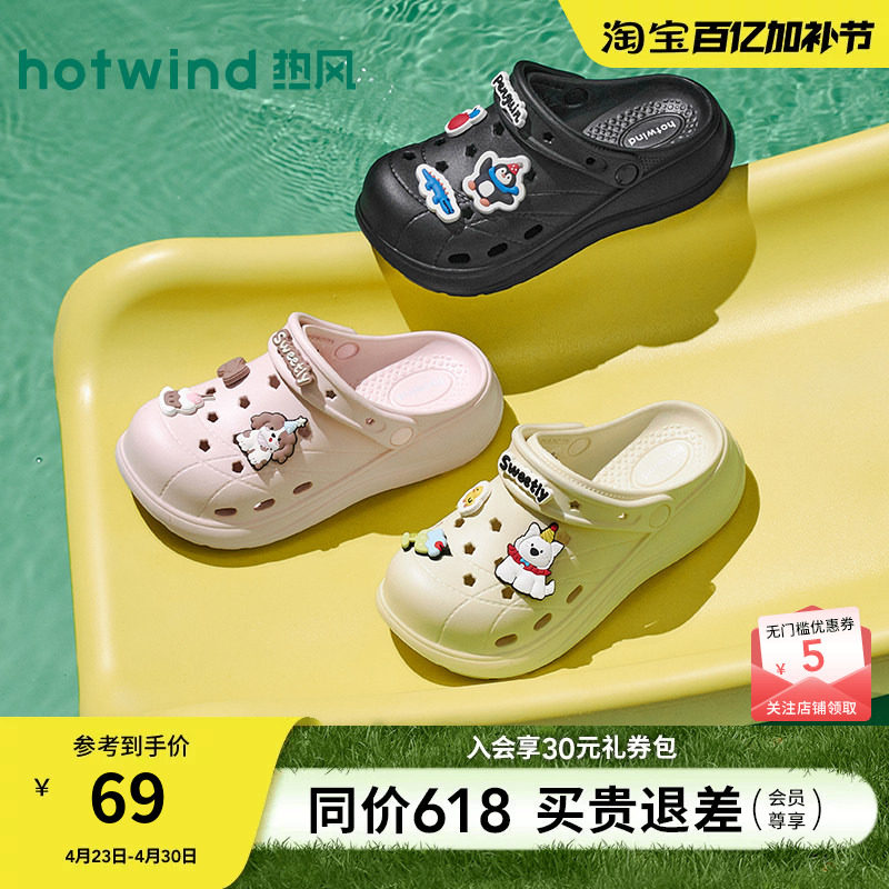 热风厚底洞洞鞋女2026年夏季新款趣味卡通凉拖两穿沙滩包头拖鞋