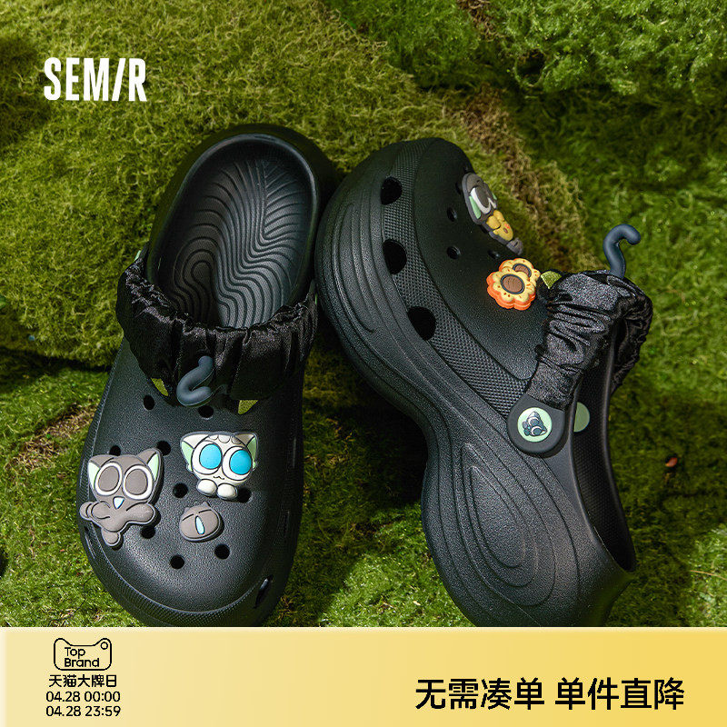 Semir罗小黑联名洞洞鞋2026夏季新款汲水厚底增高外穿沙滩凉拖鞋