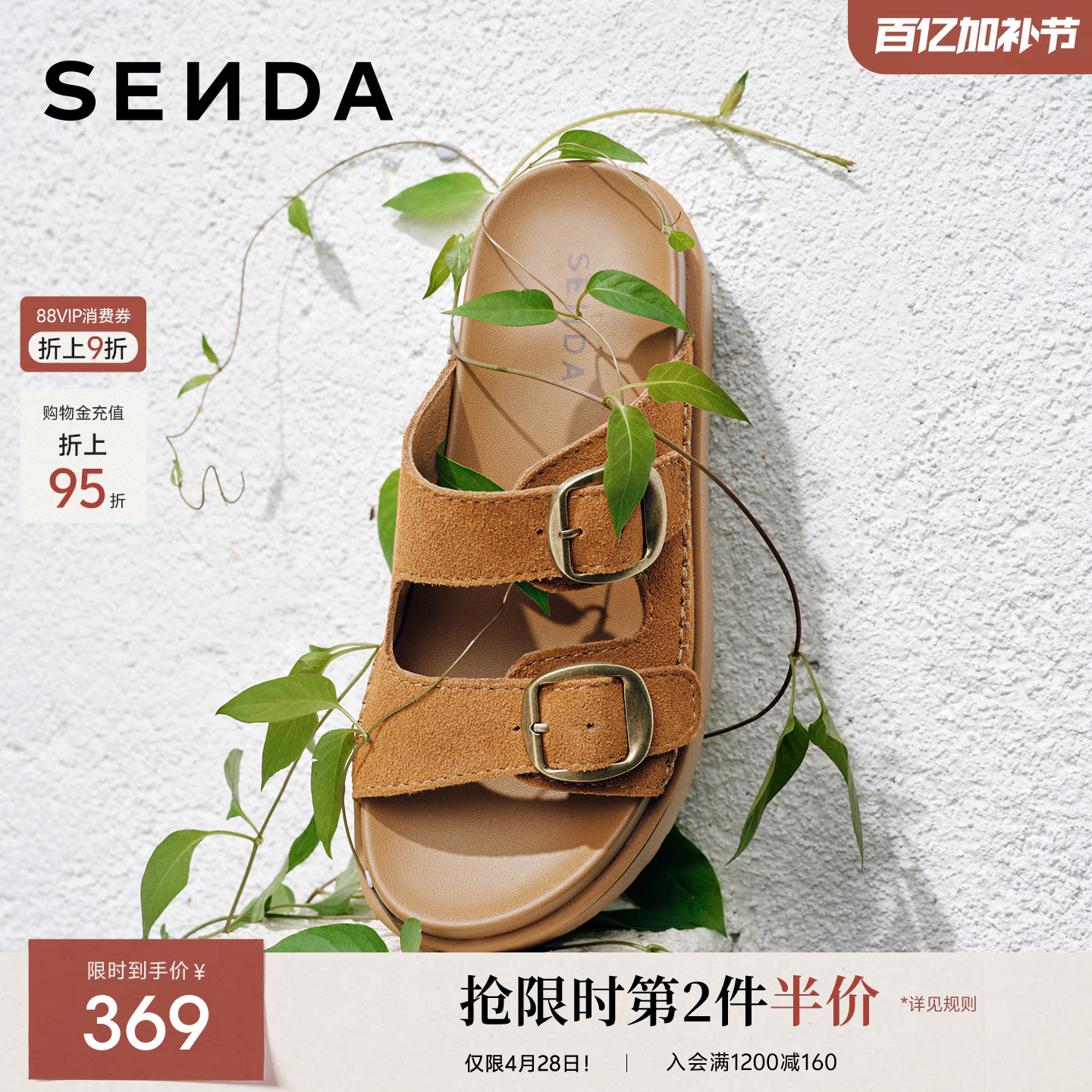 森达空气勃肯鞋女鞋夏新款商场同款外穿拖鞋厚底增高沙滩凉拖鞋
