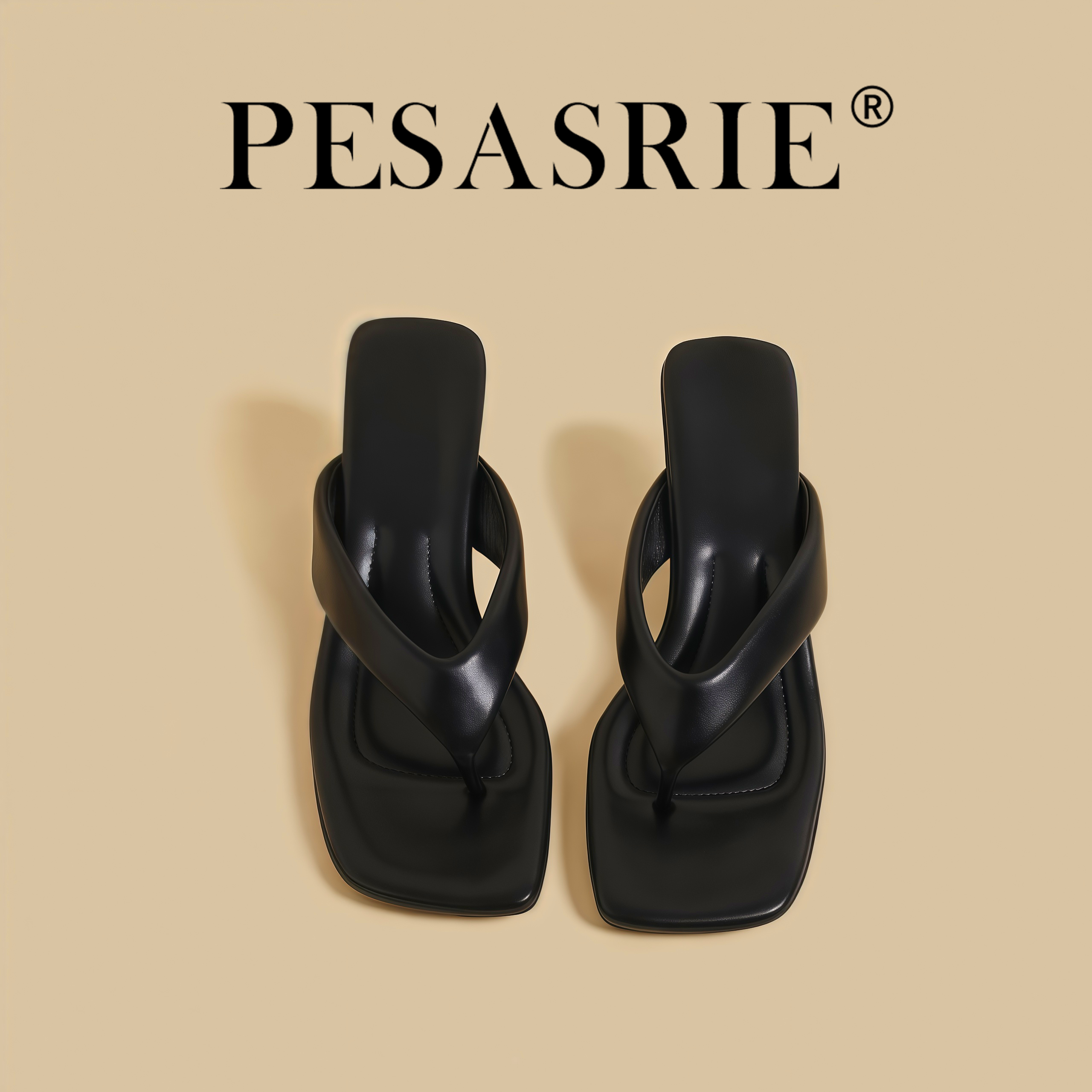 PESASRIE/柏萨尼高档轻奢凉鞋2026年新款凉拖鞋方头一字夹趾休闲
