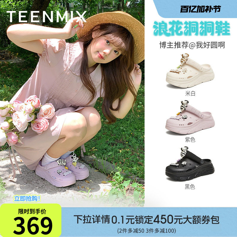 森马洞洞鞋女夏季外穿厚底增高包头拖鞋防滑耐磨三亚海边沙滩凉鞋