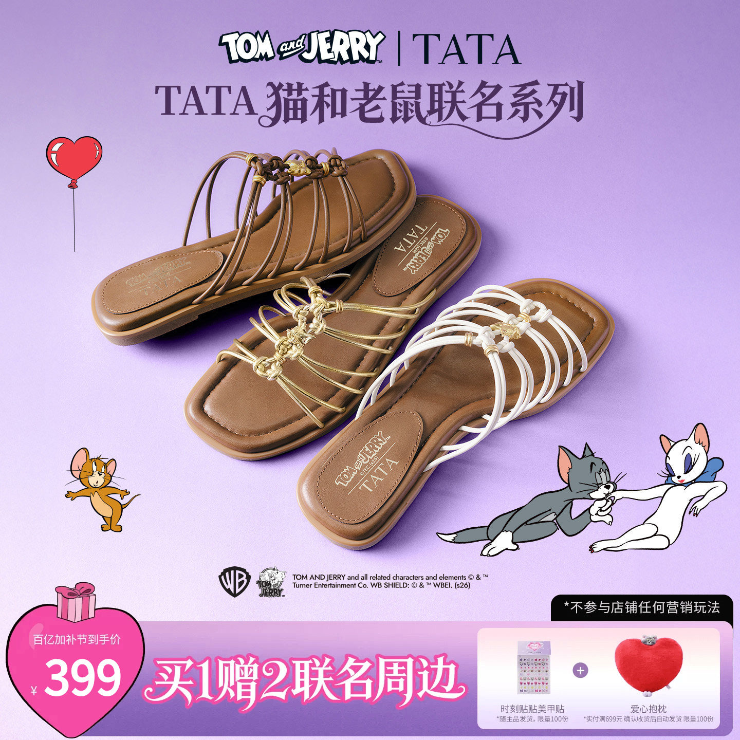 TATA他她猫和老鼠联名金吉拉女鞋夏平底一字拖设计感拖鞋7ZX18BT6