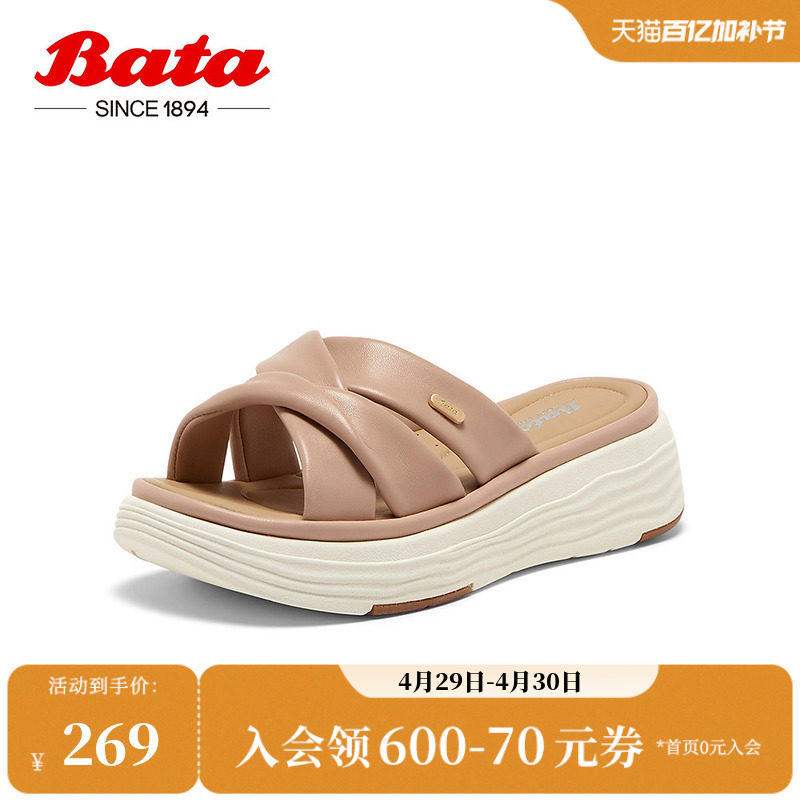 Bata外穿拖鞋女季商场新款羊皮百搭厚底休闲凉拖鞋UCL88BT5