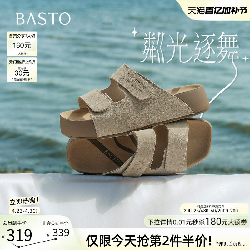 百思图2026夏季商场新款真皮厚底勃肯鞋休闲女外穿拖鞋D3926BT6